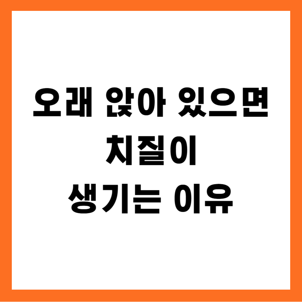 오래 앉아 있으면 치질이 생기는 이유사무직이나 운전, 공부처럼 오래 앉아 있는 생활을 하는 사람들 사이에서 치질을 겪는 경우는 생각보다 흔합니다. 실제로 치질(치핵)은 단순히 변비 때문만이 아니라, 앉아 있는 시간과 자세와도 깊은 관련이 있습니다.문제는 “앉아 있는 게 왜 항문에 영향을 주는지”를 잘 체감하지 못한다는 점입니다. 이 글에서는 오래 앉아 있는 생활이 어떤 구조로 치질을 유발하거나 악화시키는지를 차분하게 정리해드립니다. 치질과 ‘앉는 시간’이 연결되는 이유치질(치핵)은 항문 주변 혈관이 늘어나면서 생기는 질환입니다. 이 혈관은 압력 변화에 매우 민감한데, 장시간 앉아 있는 자세는 항문 쪽으로 지속적인 압력을 가하는 환경을 만듭니다.즉, 변비가 없어도 오래 앉아 있는 것만으로도 항문 혈관에는..